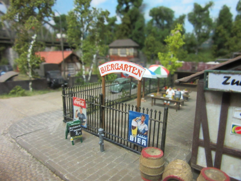 Einige Sachen sind von Busch andere von Preiser und Faller. Alles zusammengemixt gibt es eine Menge Kleinkram den Du ohne Brille oder Lupe nicht auf den Tisch bringst. Warte im Moment noch auf zwei N Leuchten für den Biergarten. Hoffe ich habe am Wochenende alles beisammen und kann dann aufbauen. Grüße und bis später sagt Willi