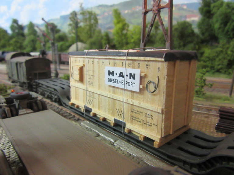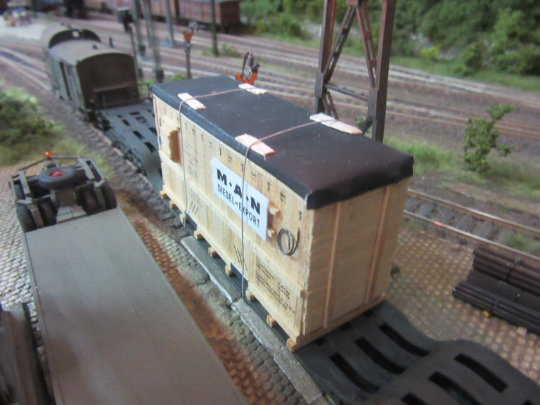 Wieder mal eine klasse Geschichte die Du uns hier zeigst, wenn ich bedenke welche Zeit man für die schönen Fotos braucht, mein Respekt!!!! Und so ein toller Tiefladewaggon Aber!! An den Kranhacken gehört auf jeden Fall noch eine Traverse damit die Stahlseile nicht am guten Diesel und seiner Verpackung zerren!!!! Ansonsten: Nur schön!!!!!!!!!!!!!!!!!!!!