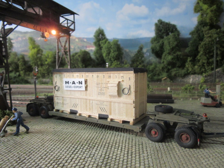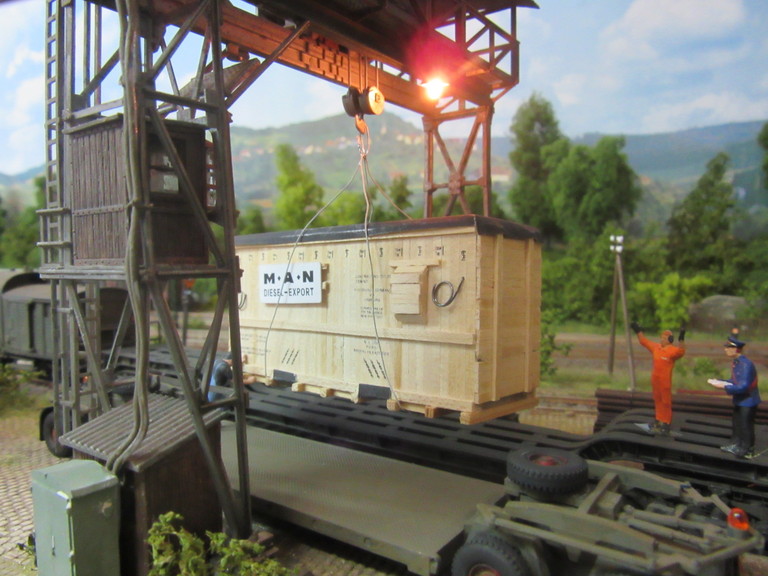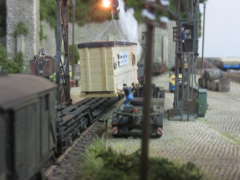 Hallo Willi, einfach wieder grandios deine Verladeszene einzig die Kiste am Kran, da wäre vielleicht Zwirn besser wie der doch etwas steife Draht, aber das ist nur ne kleine Kleinigkeit. Ich finde die Watte immer grandios - das sieht echt gut aus und so im "Leerlauf" passt das weis sehr gut.