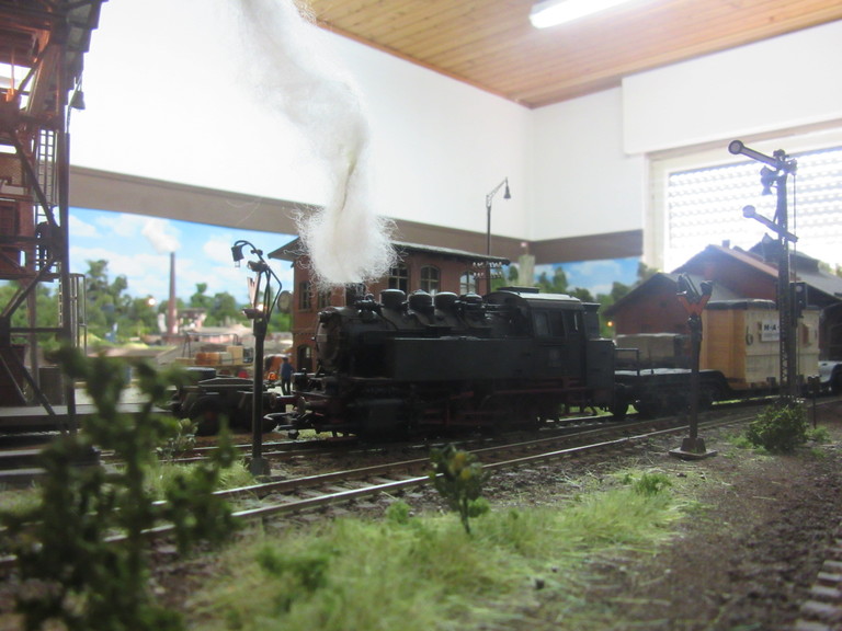 Minuten später ist Kuhn auf seiner Lok, öffnet den Regler und schiebt die Fuhre nach Rücksprache mit dem Fahrdienstleiter zurück