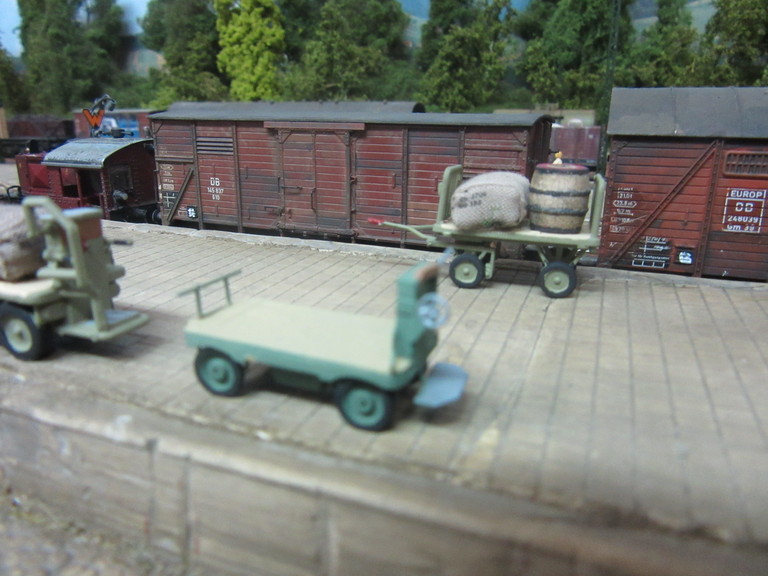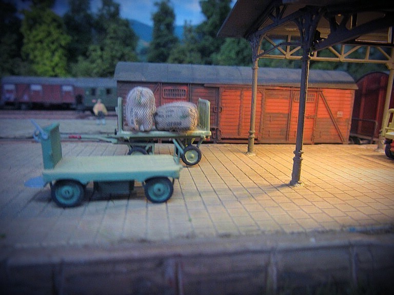 Hallo Willy,vielleicht ein kleiner Tip am Rande.Preiser hat die (für meine Begriffe)lange ersehnten Bahnsteigkarren Ep III ausgeliefert.Ich hab´sie Freitag bekommen.Mit ein bißchen farblicher Behandlung,sie würden sich in Deiner Güterabfertigung gewiß nicht schlecht machen! Viele Grüße Uwe
