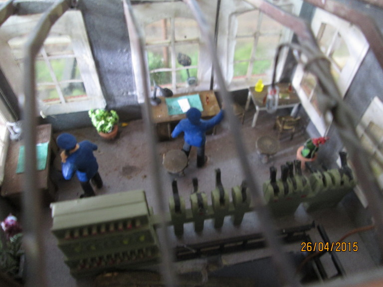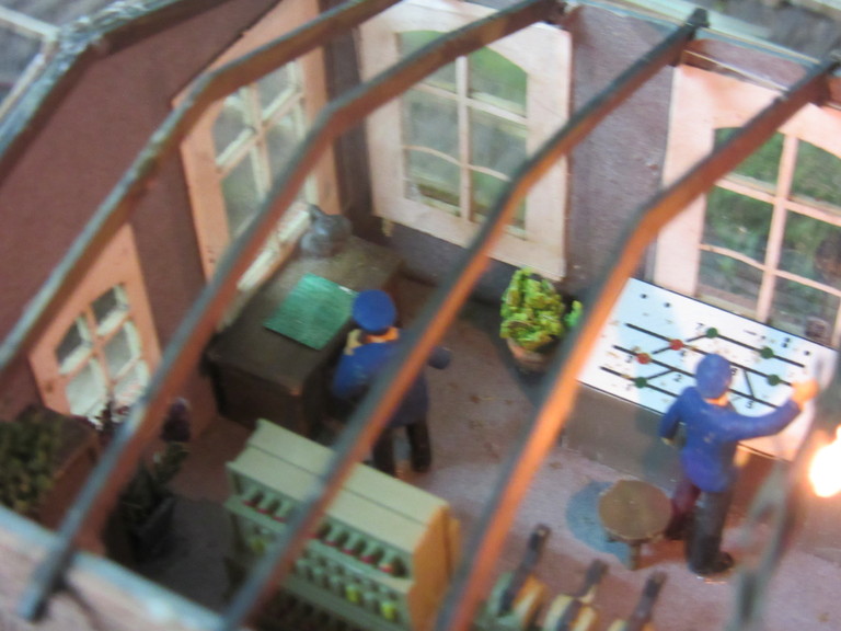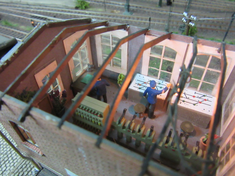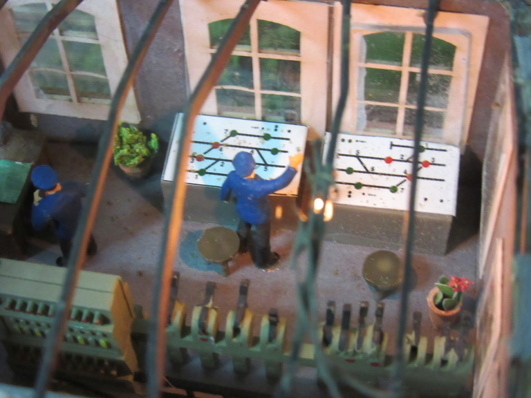 Das Stellwerk von der Gleisseite aus ...wegen dem frühen "Eingriff"an den Stellpulten etwas "kopflos"