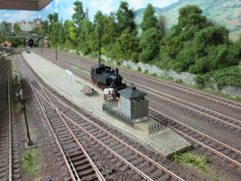 Deshalb nur eine Anmerkung zum Toilettenhäuschen. Das Stinkeding mitten auf dem Bahnsteig zu plazieren hätte die große Bahn auf einem Bahnhof Deiner Größe m.E. nicht gemacht. Ok, Bullay scheint das Gegenteil zu beweisen, das ist aber wohl auch schon wieder 40 Jahre her, wenn Deine Anlage in den 50ern spielt. Vielleicht gab es damals im Stationsgebäude noch keine passenden Einrichtungen... Fahr mal in den Sommerferien auf einen Autobahnparkplatz Deiner Wahl mit kleinem Toilettenhäuschen und nimm mal eine Nase...So ungefähr müssen sich Herr und Frau Preiser dann auch fühlen...nicht umsonst wurde der Abort früher immer etwas abseits positioniert. Hier in Köln wird an vielen Plätzen zu Karneval auch immer so ein mobiles Pissoir installiert. Lecker ist anders... So schön das Ding auch ist, ich würde es nicht auf dem Bahnsteig positionieren, sondern einen alternativen Platz suchen.