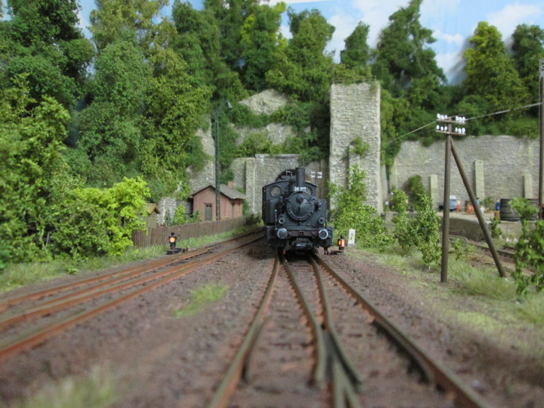 Das Brawa Signal steckt doch auf einem kleinen Röhrchen in der Anlageplatte,wie Du wohl weißt und ist damit topp gegen Abbruch gesichert ,weil es einem dicklichen Niederrheiner der mit der Knipse vor der Lok rummacht natürlich ausweicht,anstatt kaputt zu gehen. Ich habe es wieder fest angedrückt