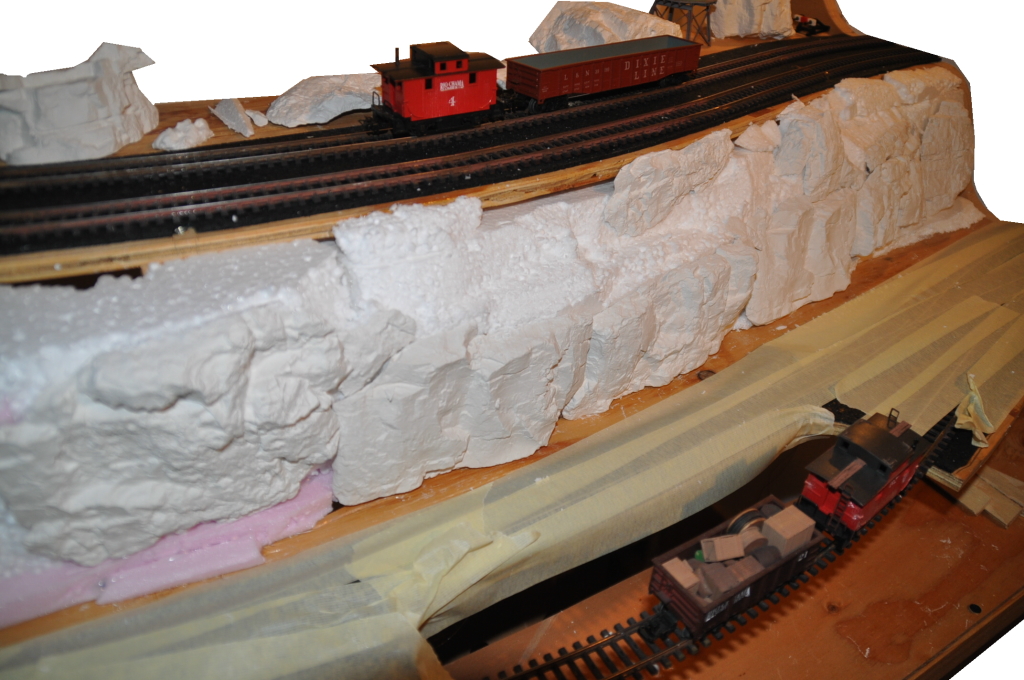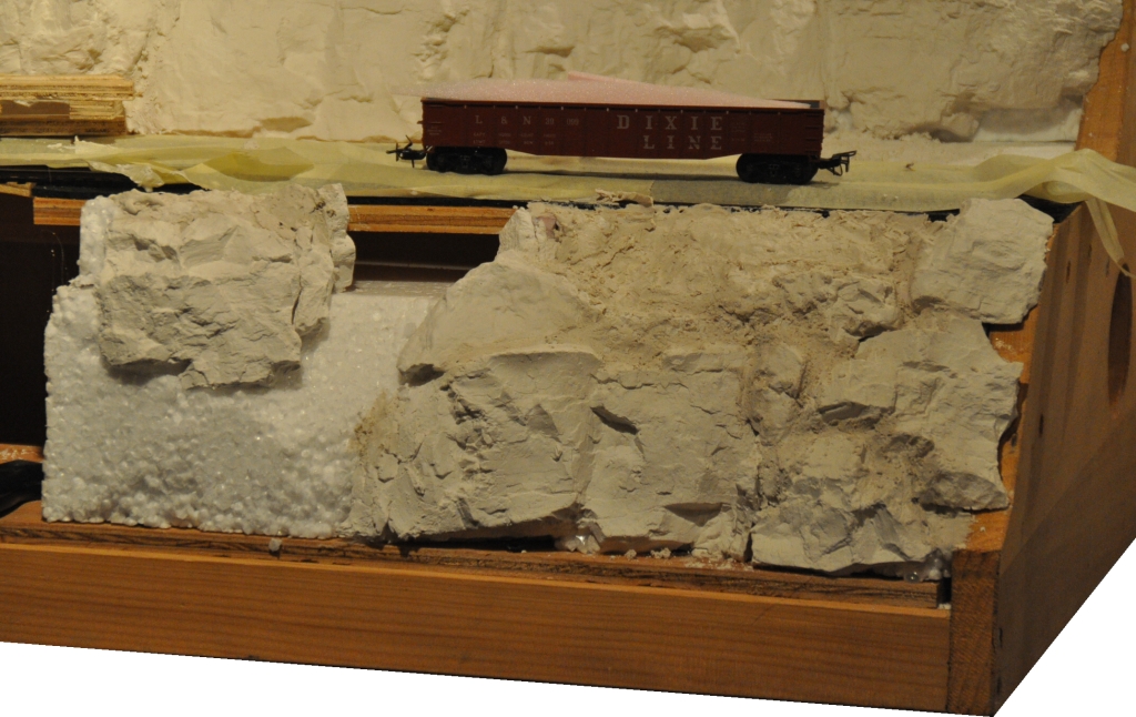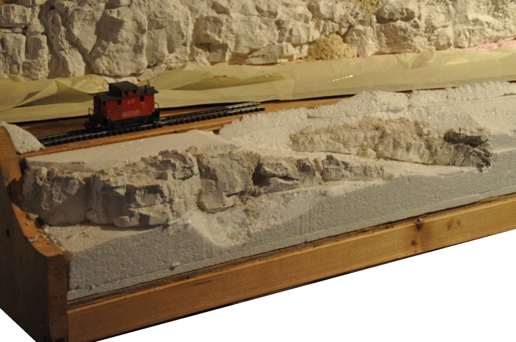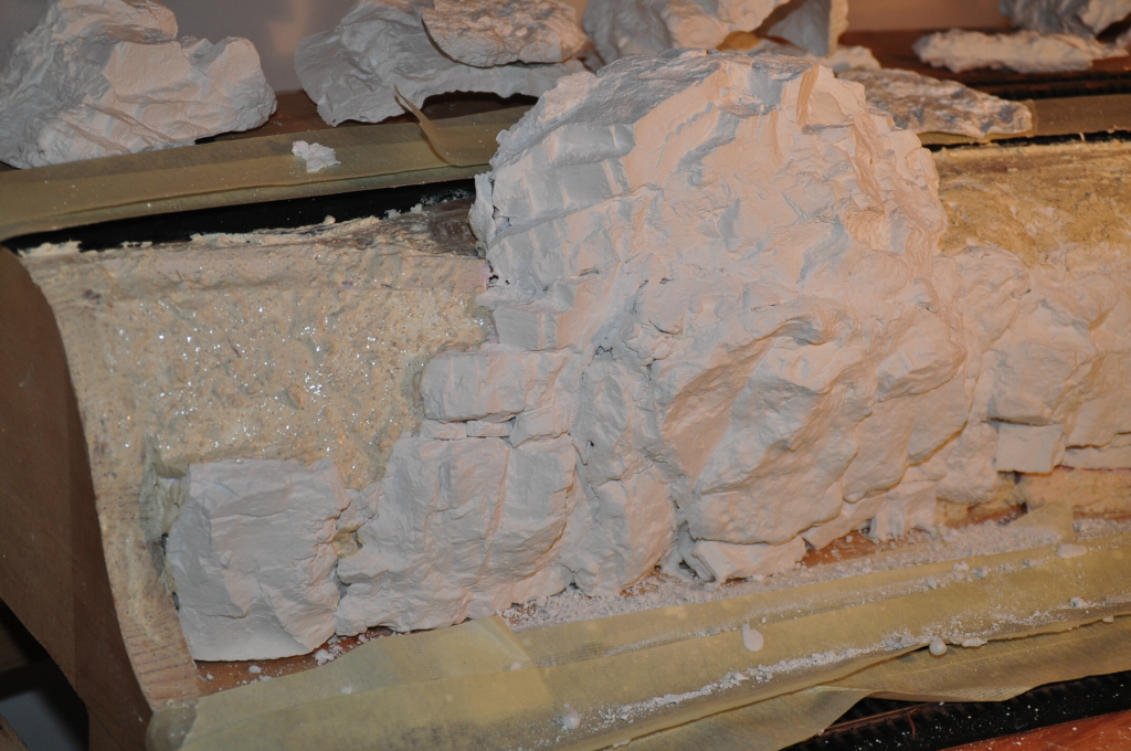 Noch ein Update vor dem Jahreswechsel: nachdem an Weihnachten keine Zeit war, konnte ich heute etwas Styropor, Heisskleber und (Woodland-) Gipsformen verarbeiten. Man sieht zwar (noch), daß es sich um einzelne Gipsabgüsse handelt, ich hoffe aber, daß ich das mit mehr Gips kaschieren kann.