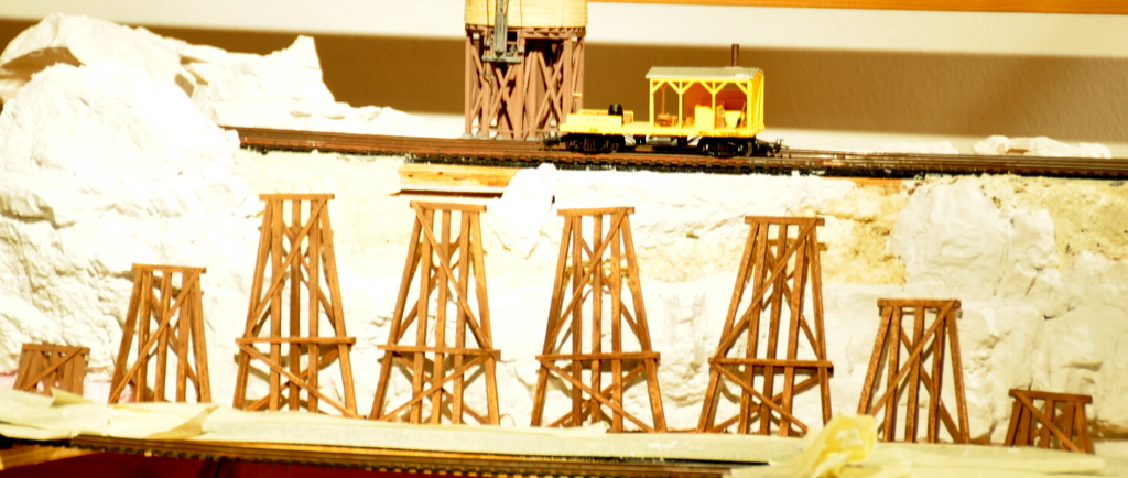 Die Stützen für die Trestle Bridge sind großartig! Sehr schön. Hier bei uns ist übrigens meine Frau Manu diejenige, die für solche und ähnlich filigranen Holzarbeiten zuständig ist: Bahnsteige aus feinen Hartholzlatten, aus Streichholz, Zahnstochern. Aber wenn's drauf ankommt und etwas nicht ist wie es sein sollte, dann ist auch schnell mal ein Galgen errichtet.