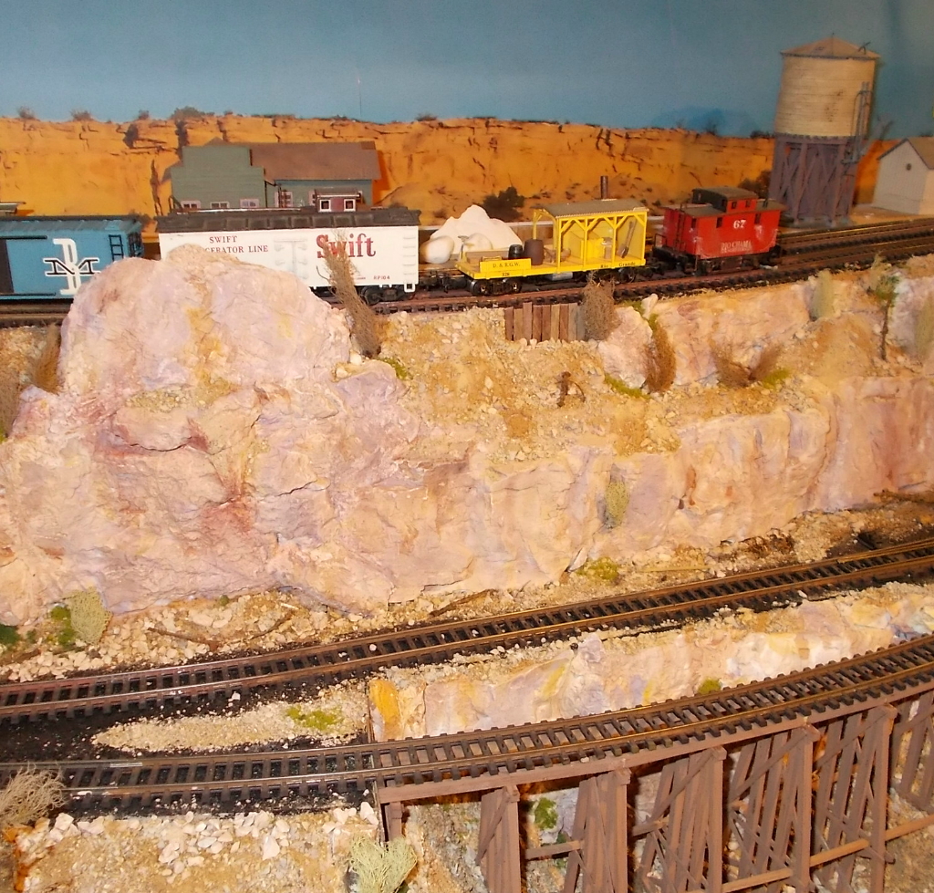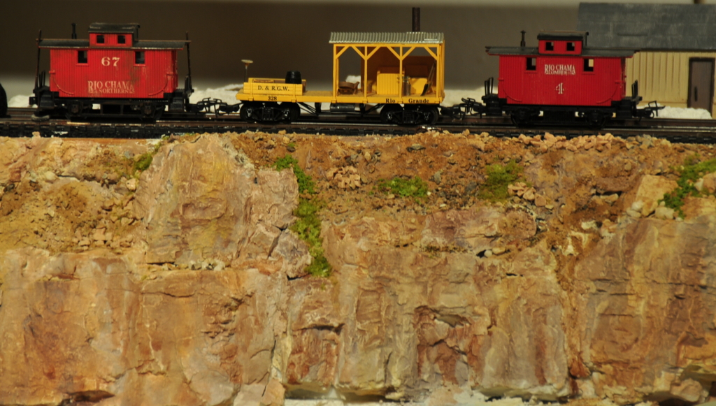 Die Trestle Bridge ist hervorragend gelungen! Das sieht wirklich realistisch aus, wie überhaupt auch die schroffen Felsen rundherum. Auf halber Höhe am Abgrund entlang zu fahren, hat eben seinen besonderen Reiz.
