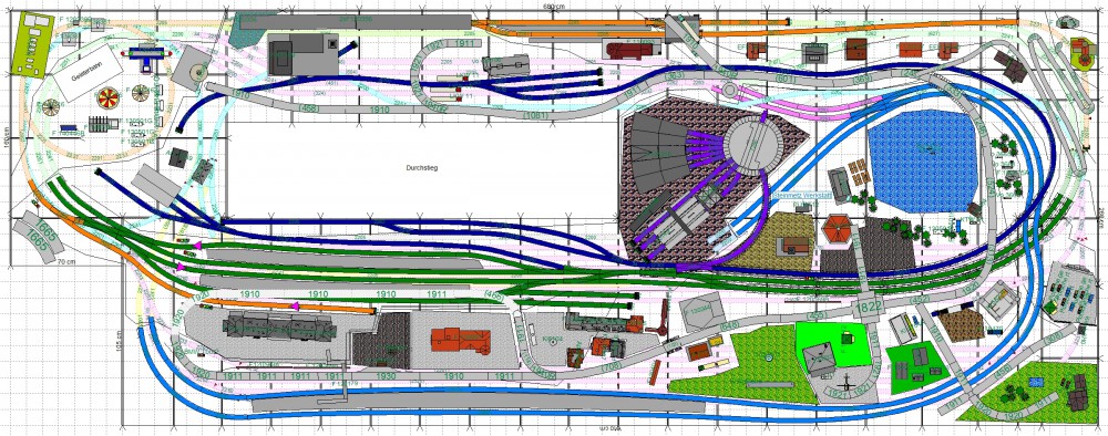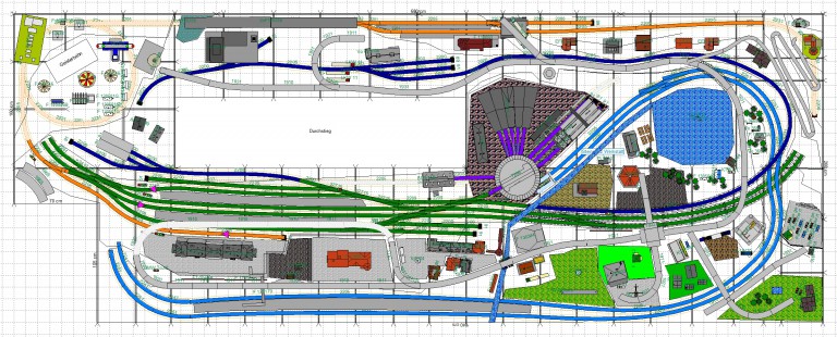 Vielleicht hat ja jemand von euch noch eine Idee - an den Grundzügen des Gleisplanes auf der rechten Seite ist aber nicht mehr zuviel zu rütteln, da der Rohbau bereits zu großen Teilen steht.