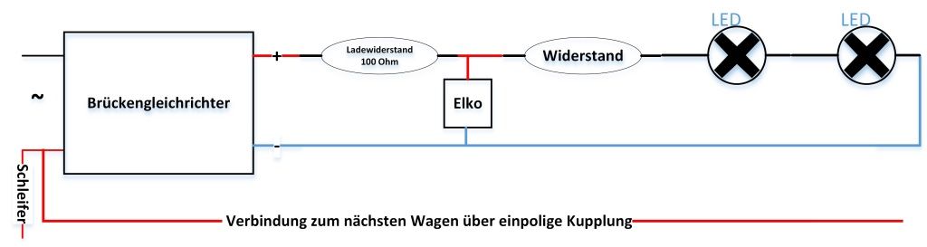 Ein weiterer Aspekt wird es sein, die Schaltungen auch auf ganze Züge auszudehnen, ohne dass jeder Wagen einen Schleifer bzw. Decoder bekommt. Hier muss dann jeweils überlegt werden, ob der Zugverband „immer“ in dieser Konstellation fährt oder jeder Wagen für sich beleuchtungstechnisch autark bleiben soll