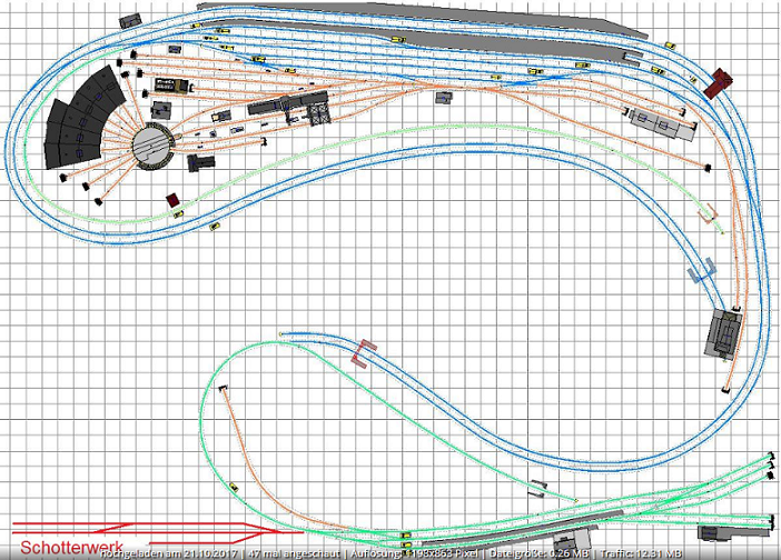 Die Hauptstrecke (oliv) geht zweigleisig über gegenläufigen Wendel in den SBF ... geht ALLLES !