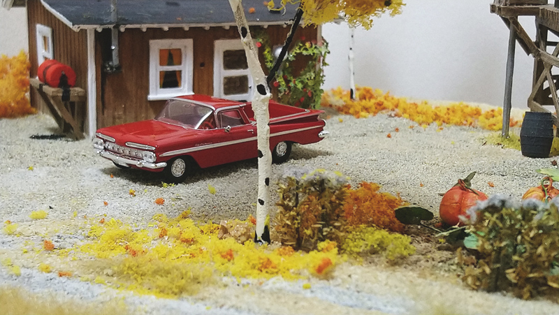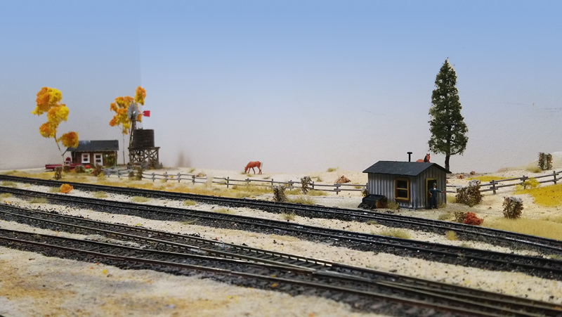 Segment #1 ist soweit fertig, es fehlen nur noch die Verkabelung der Beleuchtung und der Märklin-Weiche an die Schalter und die Telegrafenmasten entlang der Strecke. Für die Farm wird es irgendwann noch ein paar Hühner geben.