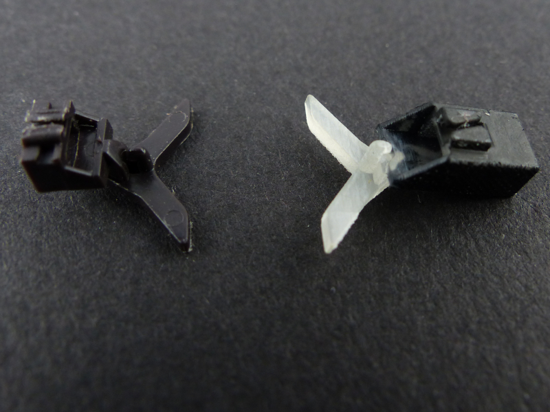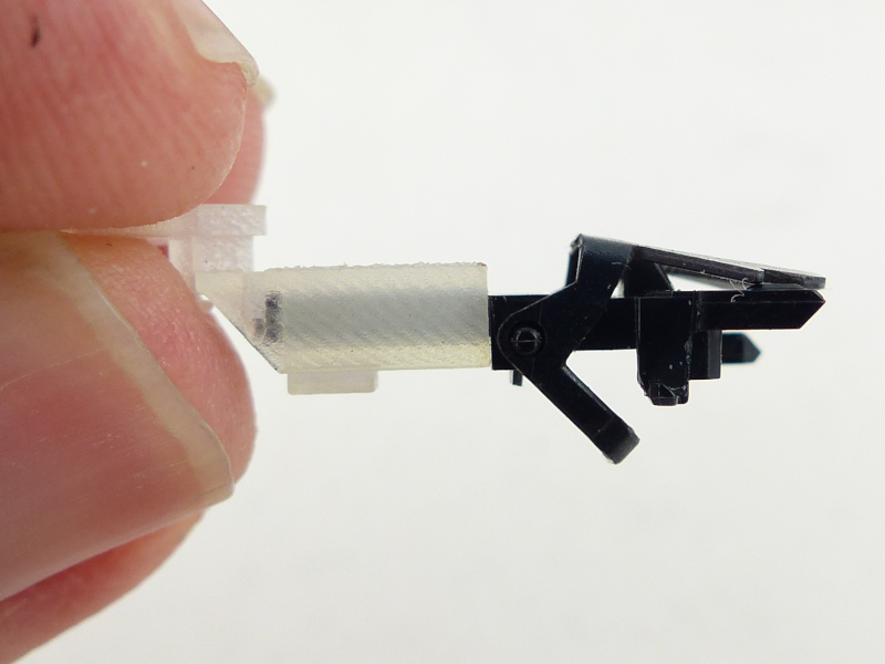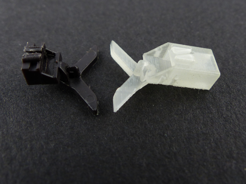 Zum Vergleich jetzt ein Foto vom Piko-Teil und dem neuen, grduckten Adapter, der noch unlackiert ist.