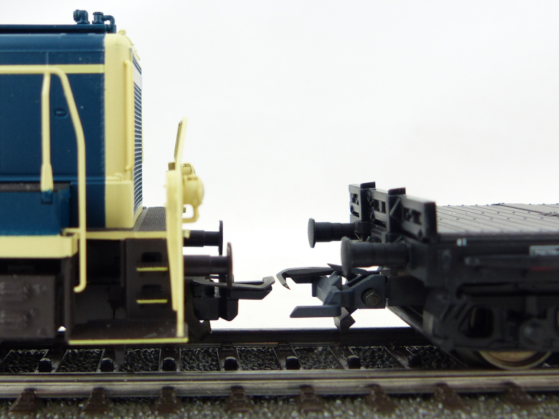 Auch nachdem ich die Krois-Kupplungen im hinteren Brereich schon etwas bearbeitet hatte, ragt die Kupplung nach vorne hin schräg in die Höhe. So ist ein Kupplen mit den Wagen nicht möglich.