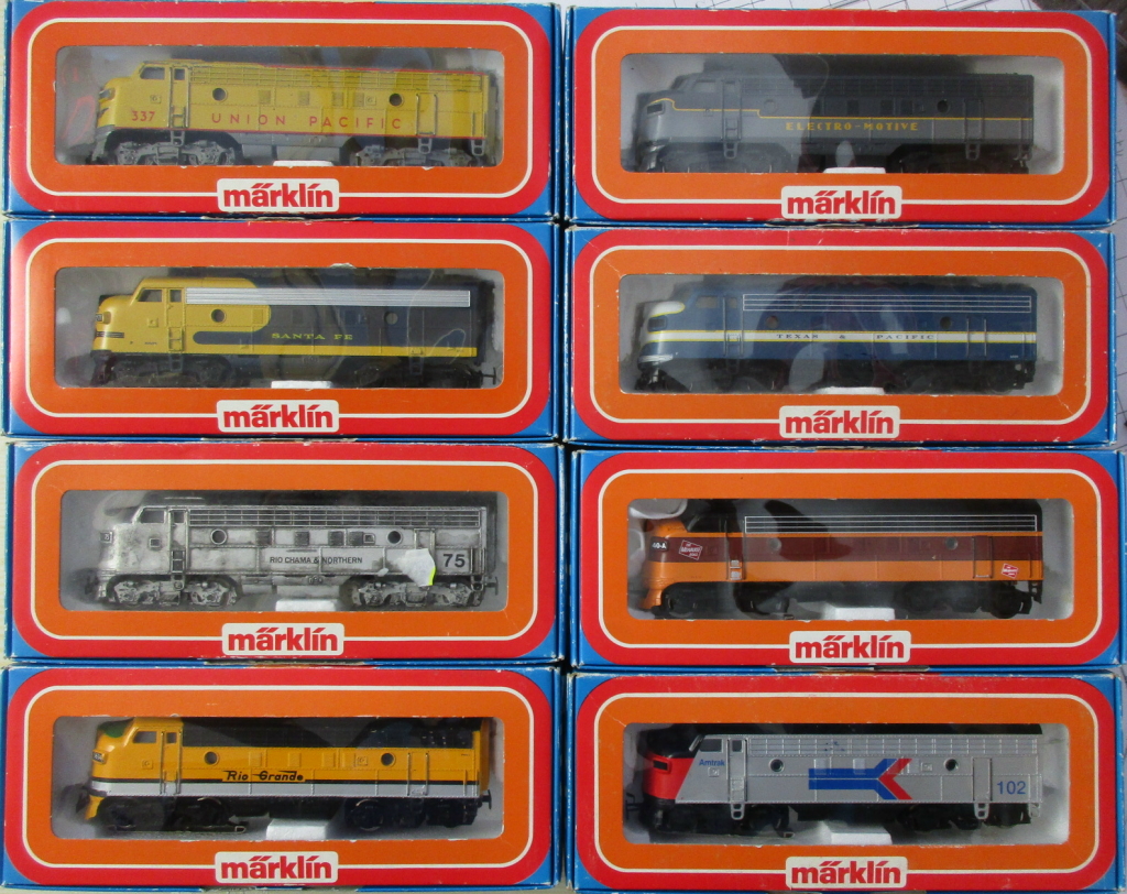 Hier die Betriebs- und Märklin-Atikelnummern: UP 337 - 4061 EMD 701 - 3349 ATSF 271 - US-Modell auf Märklin Chassis T&P 1537 - 3781 RC&N 75 - selbst lackiert auf Märklin Chassis T&P 40-A - 33623 DRGW 5634 - 3062 Amtrak 102 - 33621