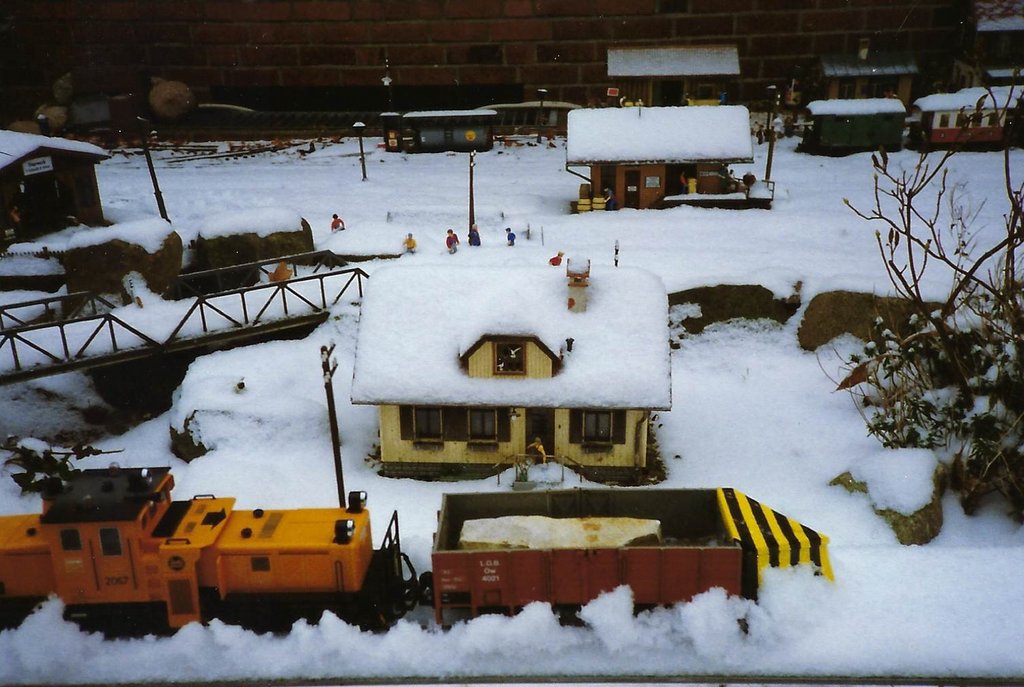 Ich habe in einem geerbten Fotoalbum Fotos aus der Blütezeit von der LGB-Gartenbahn meines Großvaters (Mitte der 90er) gefunden und eingescannt. Das Schnee-Bild ist im Frühjahr 94 entstanden, die anderen beiden in 95. Man sieht, die LGB ist wirklich wetterfest.