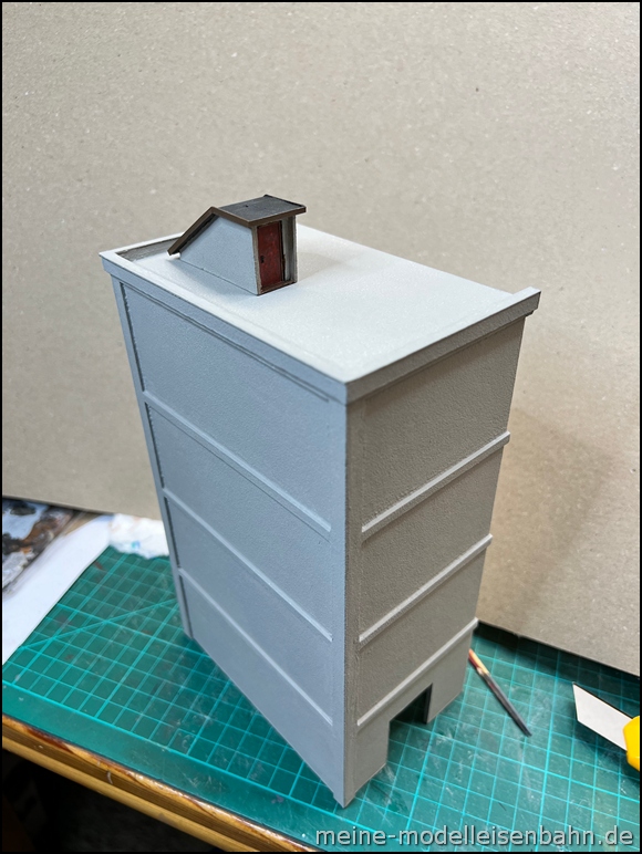 Leider fehlten die Größenangaben. Bei der Recherche verschiedener Bausätze bin ich für ein 4-stöckiges Industriegebäude bei etwa 20-24cm gelandet. Daraus habe ich für mein 4 stöckiges Kühlhaus eine Geschosshöhe von 5cm angenommen. Die sonstigen Abmaße habe ich einfach mal "nach Gefühl" ermittelt. Vielleicht könnt ihr die Maße ja dem Foto entnehmen.