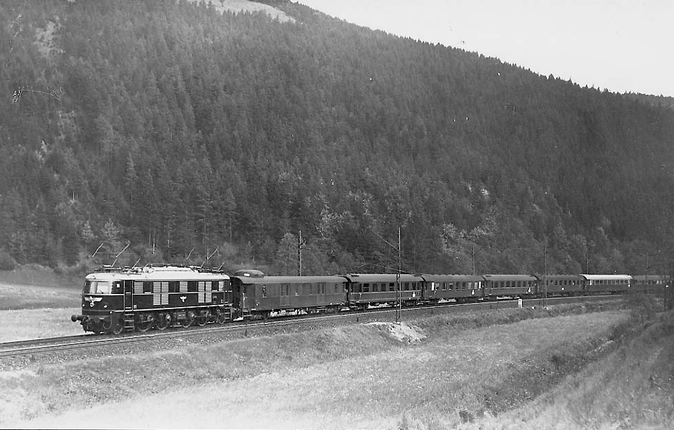 Der WR kam aus dem Kurs Brenner-Berlin, der letzte AB4ü war ein italienischer Kurswagen mit dem Wagenlauf Rom-Berlin. Die anderen Wagen waren bei der Abbildung Bauart 1935.