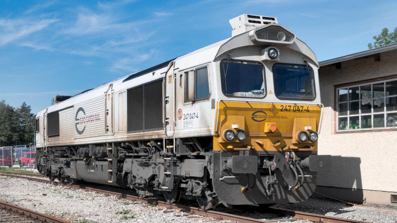 Die grosse Diesellokomotive 247 047-4 der DB-Tochter Euro Cargo Rail (heute DB Cargo France) stand am 9. September 2018 am ehemaligen Betriebswerk Freilassing.