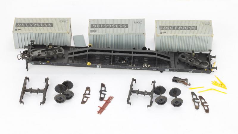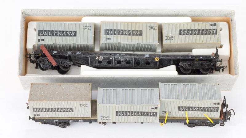 Zwei vergleichsweise günstig ersteigerte H0-Containerwagen von PIKO (DDR) entpuppten sich als ungut riechende, klebrige Ruinen in Pappschateln.