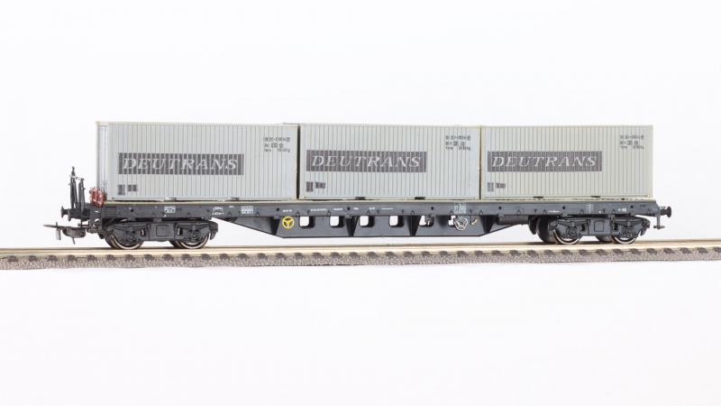 Drei sind besser als einer Damit sich unser grosser Flachwagen mit Deutrans-Containern nicht so einsam fühlt, sollten ihm gleichaltrige Artgenossen Gesellschaft leisten. Zwei passende Modelle im Paket wurden im Online-Auktionshaus des Vertrauens ersteigert. Auf den Artikel-Fotos war bereits ein gebrauchter, bespielter Zustand der Waggons zu erkennen. Real sah die begehrte Ware noch deutlich übler aus. Auch auf meinen Fotos ist der klebrige Dreck nicht zu erahnen. Leider mieften die H0-Güterwagen stark und mussten vorerst für ein paar Tage in geöffneten Verpackungen lüften.