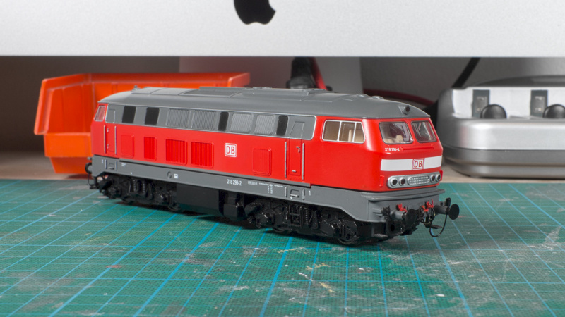 Bereits vor Jahren gelang mir die Digitalisierung eines analogen PIKO-Modells der DB-Baureihe 218 in H0. Die zuverlässige, robuste Lok hat sich bewährt, ist oft im Einsatz, wir möchten sie nicht missen.