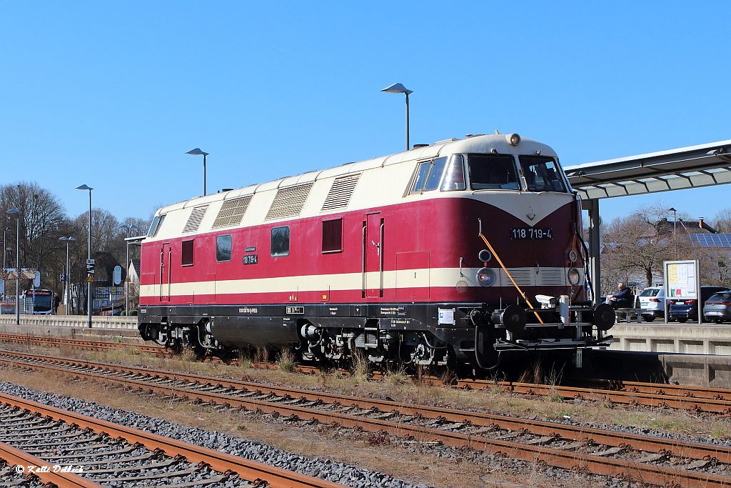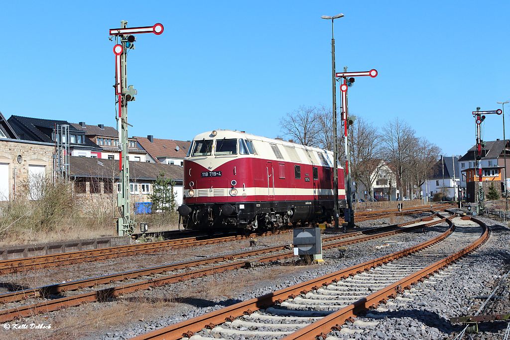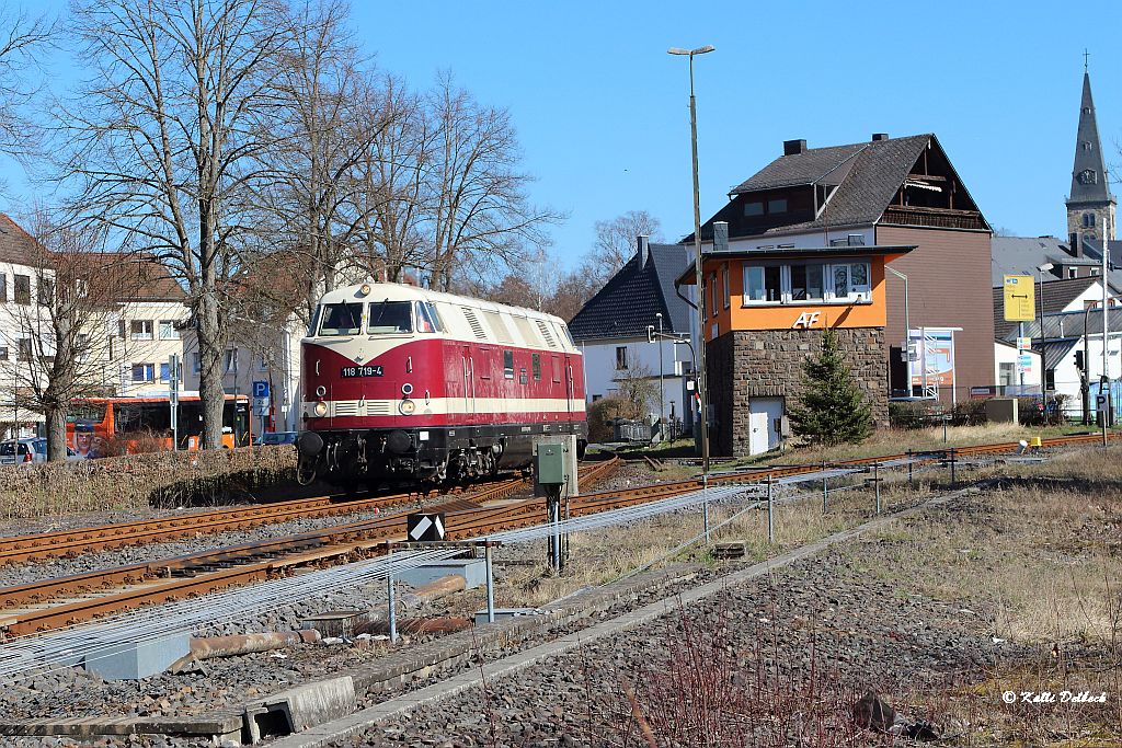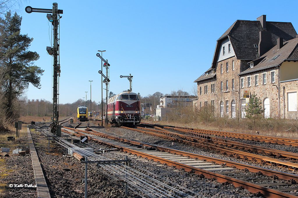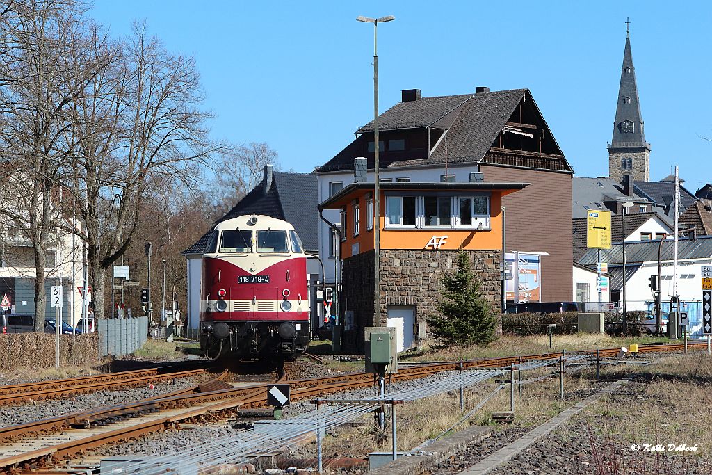Um 11.50 Uhr senkten sich die Schranken und 118 719 von der Press fuhr als Oberbaumesszug in Altenkirchen ein.