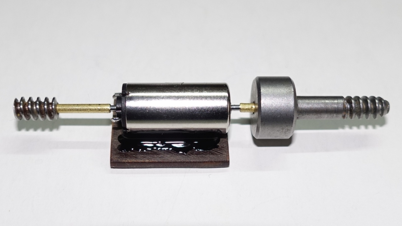Um den 8mm Motor zum Einen in der Höhe anzupassen und zum Anderen leicht demontierbar zu haben, wurde der Motor auf ein passendes Hartpapierplättchen geklebt.
