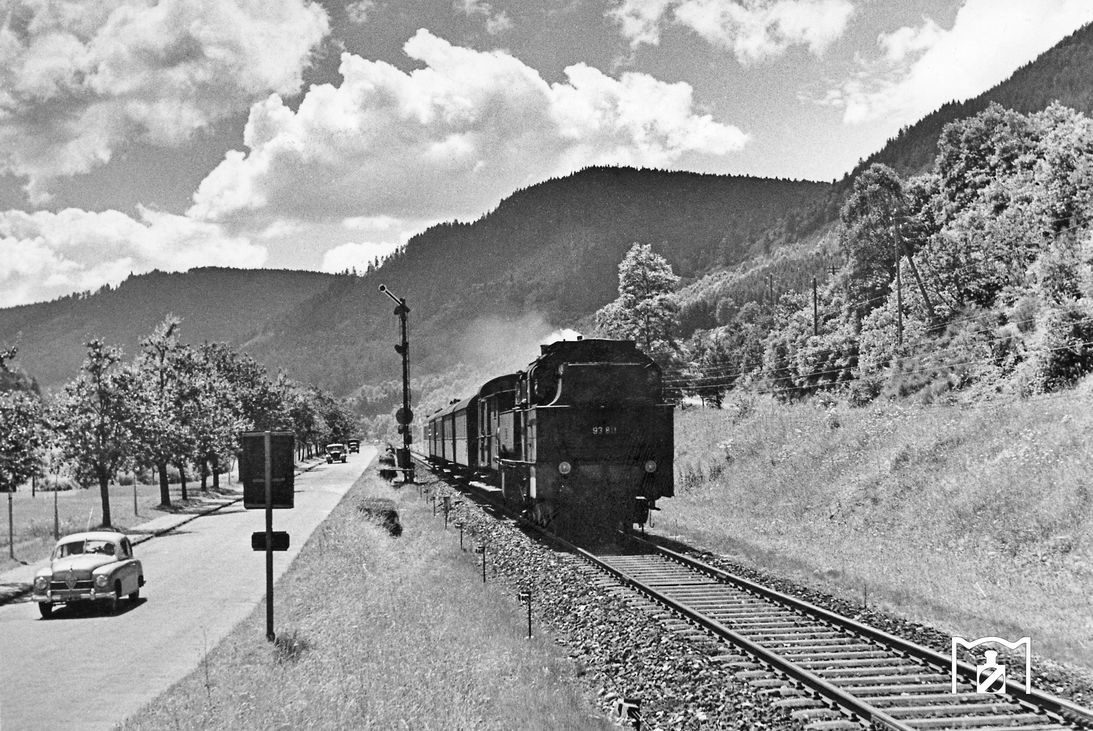 Es steht für mich unzweifelhaft fest, dass wir es hier mit einer BR 93 zu tun haben. Aber ist es wirklich eine 93.5, wie es immer wieder für die Strecke postuliert wird und auch auf Fotos so zu sehen ist ? Das Foto ist nicht besonders gut aufgelöst, aber ich habe den Eindruck, dass hier nur zwei statt vier Dome zu sehen sind. Ich habe das Buch der 93 des EK-Verlags geordert, aber es ist leider noch nicht da. Ich bin gespannt, ob es mir neue Erkenntnisse bringt.