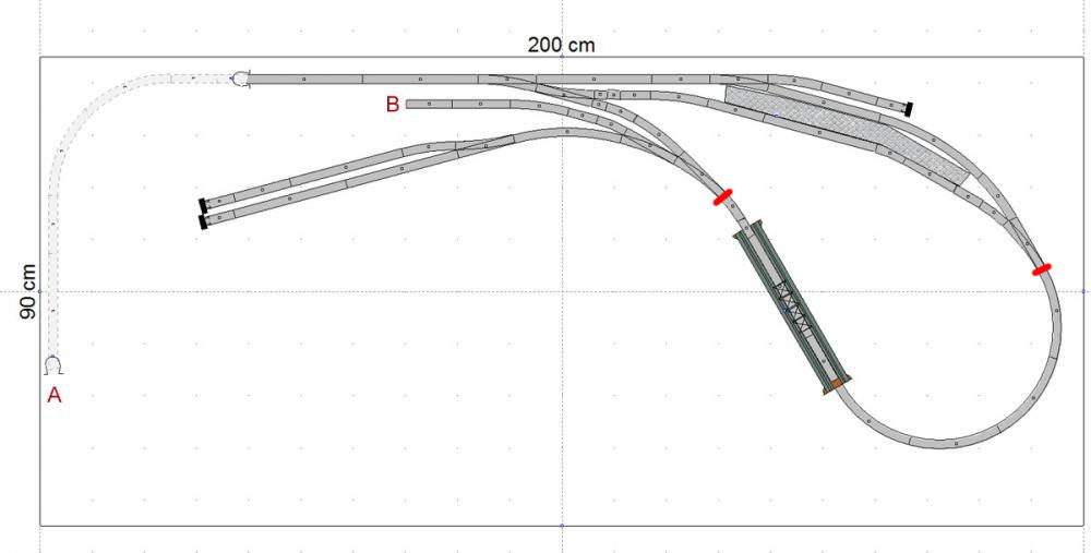 A und B bilden über den Bahnhof und die Brücke einen Kreis, das Problem ist die kleine Verbindung von A kommend zur Brücke. Diese ist aber zu kurz für ein Kehrschleifenmodul.