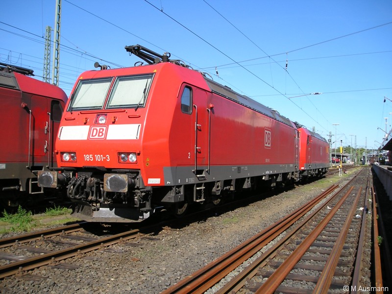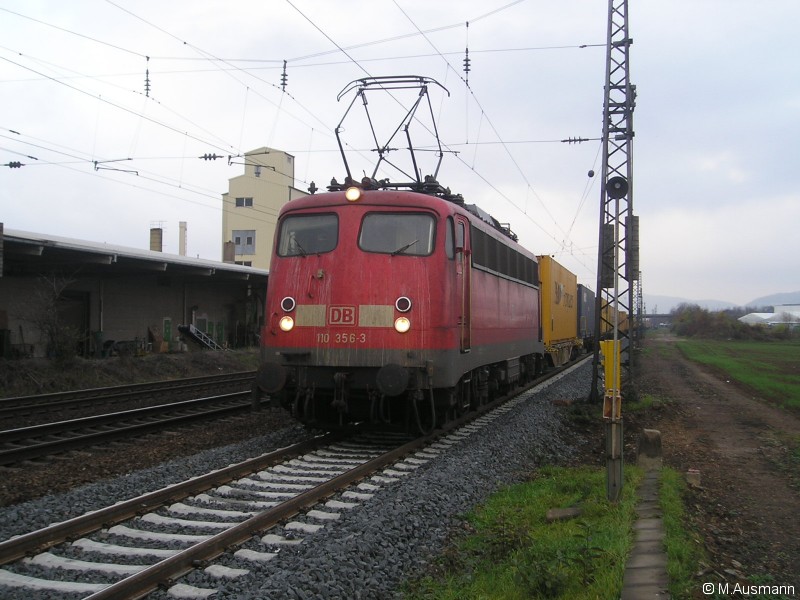 Hinten an der Lok erkennt man eine doppelte Sprechsäule von der man vom Weg, oder auch von der Lok Meldungen senden kann. (Ellok Abstellplätze im Bf. Limburg).