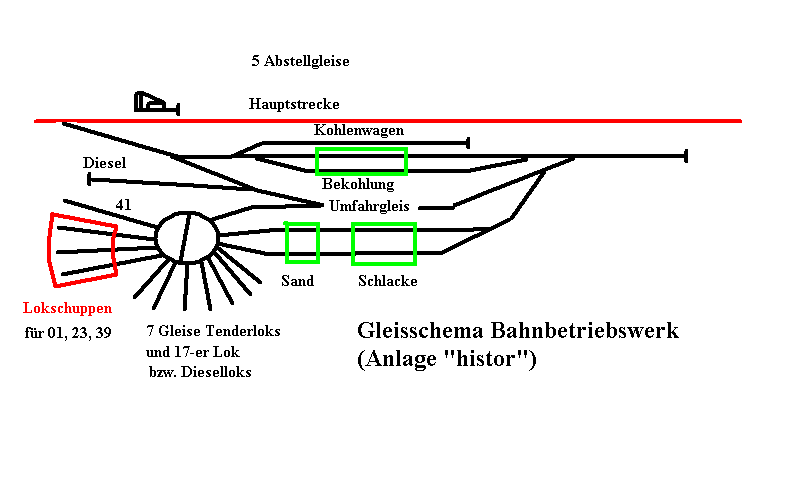 Ein Gleisschema des Bahnbetriebswerkes zum besseren Verständnis: