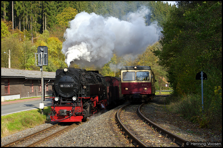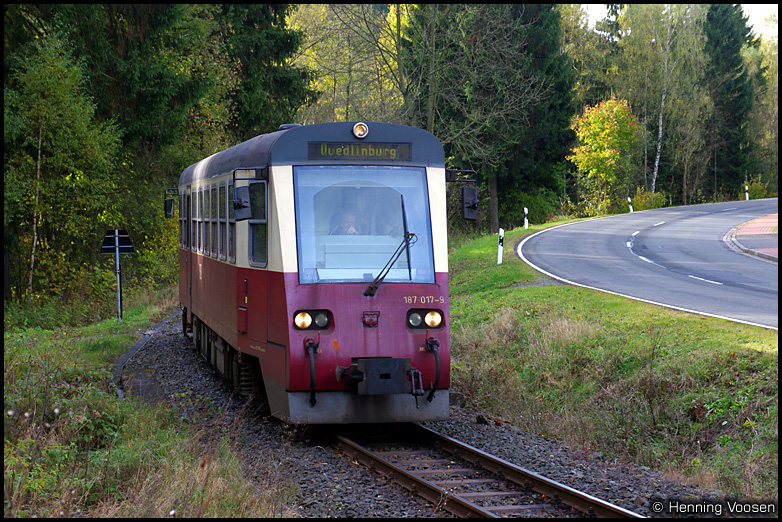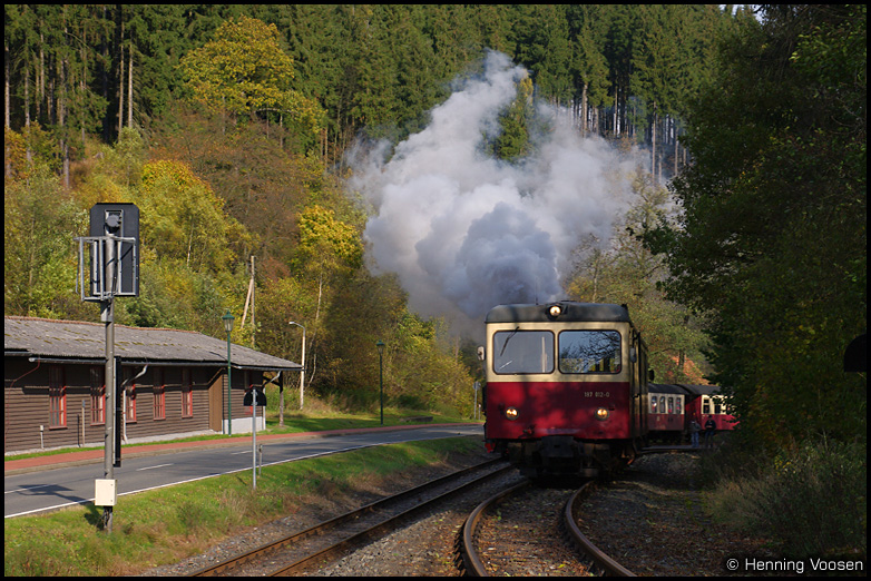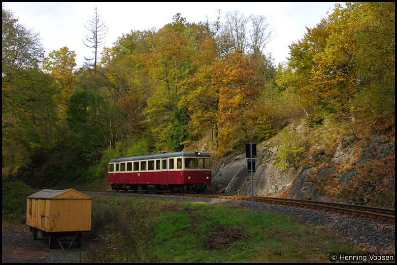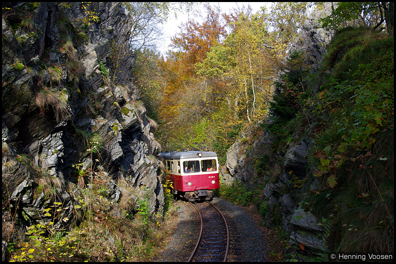 während unseres Harzurlaubs haben wir uns zu mehreren Fotografen einen Triebwagen der HSB gechartert und sind von Gernrode duchs Selketal bis Stiege gefahren. Das war eine fantastische Fahrt : - nur 9 Personen in diesem Gefährt - Fotohalte sooft und wo immer wir wollten - Scheinanfahrten und Vorbeifahrten für die Videofilmer unter uns - und nicht zu vergessen - einen Lokführer, der auf alle unsere Wünsche einging und weitere, gute Fotopunkte empfehlen konnte.