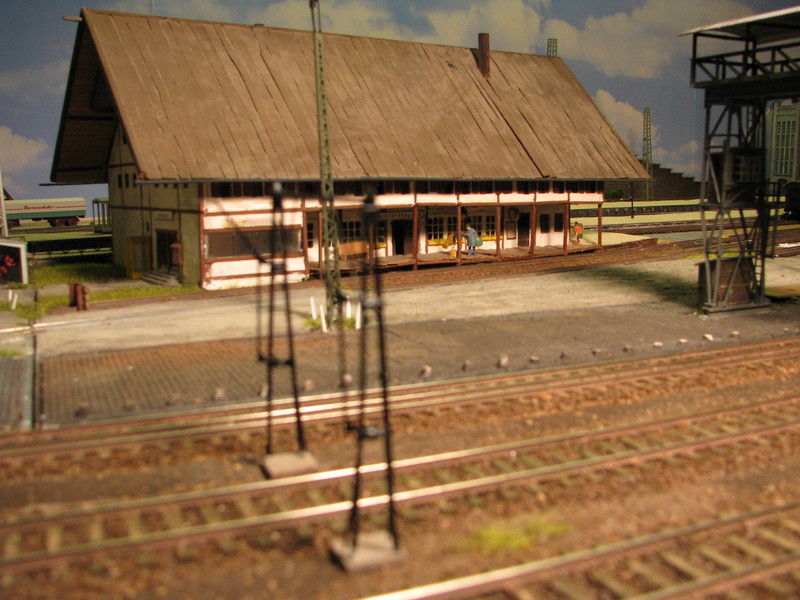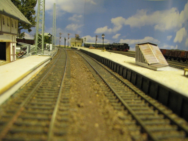 Vom Bahnhof selbst gibt's leider nicht viel an wirklich sinnvollen Bildern -nachstehende Bahnhofsausfahrt ist ja deutlich genug (da fehlt es halt noch an allen Ecken - und momentan bin ich eher damit beschäftigt wenigstens mal die Einfahrt von Waldshut aus fertigzustellen - und ja - da fehlt auch noch einie ganze Reihe von Details