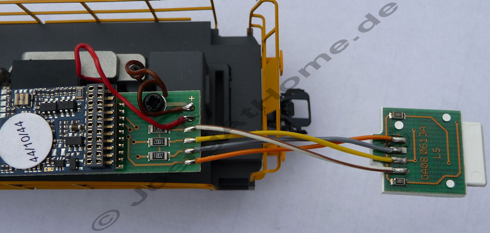 vor kurzem konnte ich die DE402 T22769 in meinen Fuhrpark einreihen. Da ich grundsätzlich alle Loks mit einer 21mtc-Schnittstelle ausrüste habe ich kurzer Hand die Hauptplatine ausgetauscht. Der Decoder befindet sich dann unterhalb der Hauptplatine, also nichts mit Führerhaus oder so. In meinen MaK´s harmonieren LoPi´s v4.x sehr gut. Falls Interesse besteht suche ich noch die E-Teile-Nr. der Hauptplatine heraus.