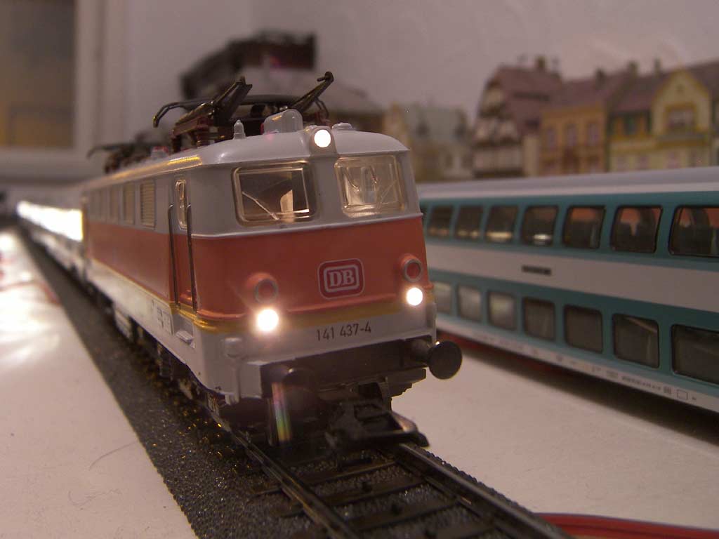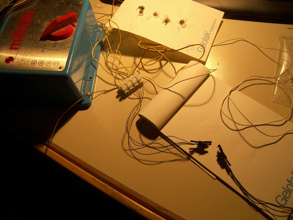 Fortsetzung mit etlichen Unterbrechungen, denn was als Wochenend-Umbau geplant war zog sich über mehr als 2 Wochen für nur eine Garnitur. Einige Probleme wie der falsche Umrüstsatz (60941 ist der richtige) waren Hausgemacht, für andere war schlicht mangelnde Zeit verantwortlich. In diese Zet fiel auch die Ausstattung der Wagen mit einer Innenbeleuchtung und Figuren. Dennoch, die gemachten Erfahrungen waren es aber Wert nicht zu schnell das ganze anzugehen. Über den Einbau des Motors und das Anschließen der Schleiferumschaltung möchte ich weniger Worte verlieren, zum einen sind die Bedienungsanleitungen ziemlich gut dokumentiert und eigentlich nicht fehlende Lücken hier im Forum häufiger zu finden. Viel wichtiger finde ich die Inbetriebnahme. Denn sie ist bei der 141 kein Zuckerschlecken.