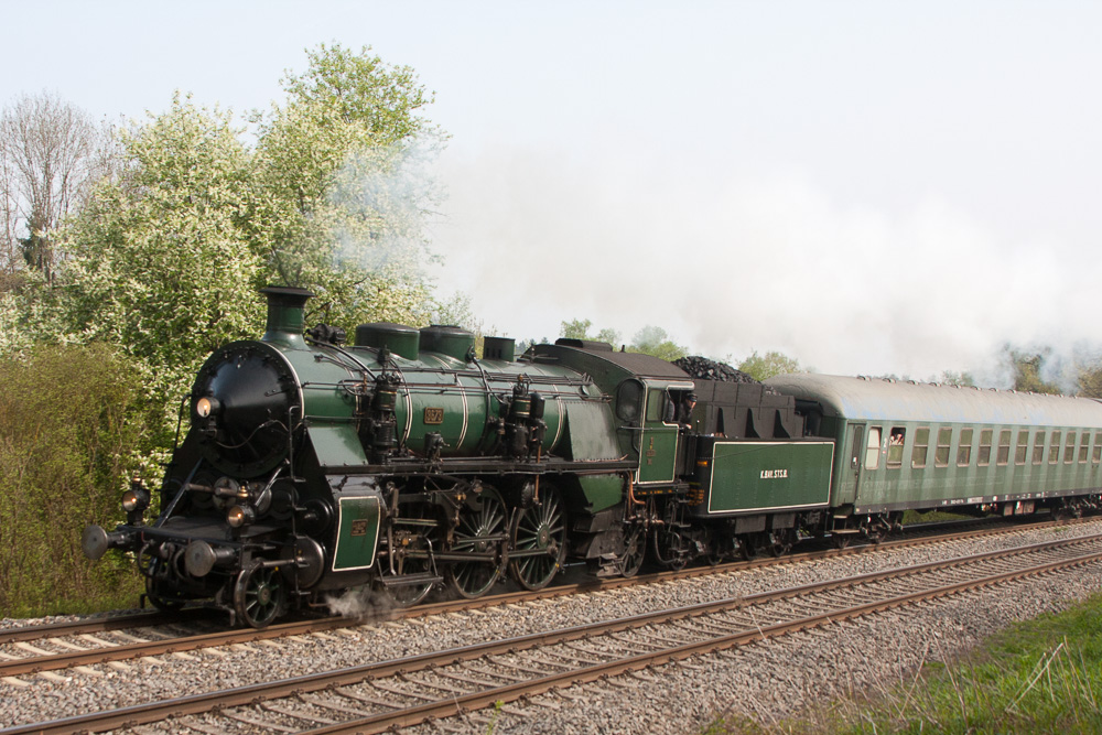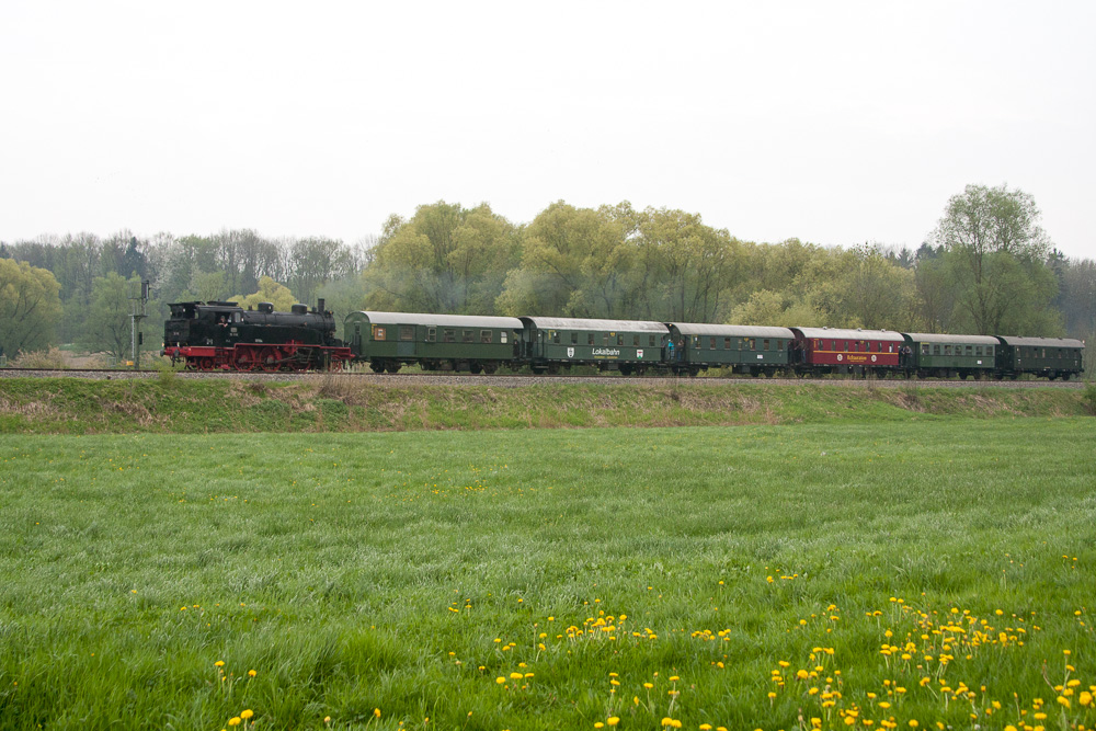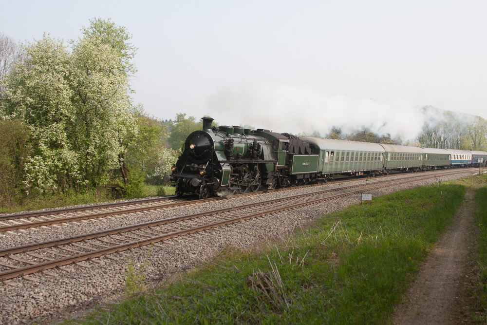 nachdem am 13.04. ein Sonderzug die S3/6 über die Allgäubahn nach Lindau führte, fand am 1. Mai schon wieder eine Sonderfahrt nach Lindau statt, diesmal über die württembergische Südbahn, meine Hausstrecke. Die Fahrt der UEF führte von Heilbronn nach Lindau, zwischen Heilbronn und Ulm wurde der Zug mit einer 194 geführt, im oberleitungslosen Abschnitt Ulm - Lindau zog die S3/6 den Zug.