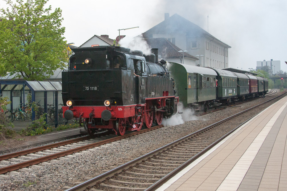Eine halbe Stunde zuvor kam noch 75 1118 mit einem weiteren Sonderzug der UEF von Ulm nach Überlingen (Radolfzell) vorbei.